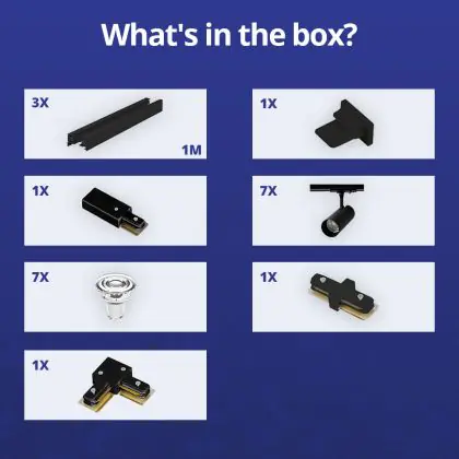 | Manufacturer Name | Complete L shaped 1-Phase Track Set Black incl. 7x Spot fixture + GU10 2700K 3W Dim – 1 x 2 meter i | |