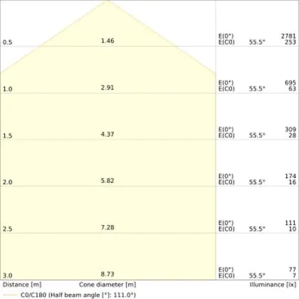 The colour code is a combination of colour rendering (CRI) and light colour (Kelvin). The first number indicates the colour rendering (1 = very poor colour rendering, 9 = maximum colour fastness). The second and third number contains the light colour. Example: the colour code 830 consists of good colour rendering (8) and warm white light (3000K). |