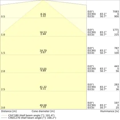 The colour code is a combination of colour rendering (CRI) and light colour (Kelvin). The first number indicates the colour rendering (1 = very poor colour rendering, 9 = maximum colour fastness). The second and third number contains the light colour. Example: the colour code 830 consists of good colour rendering (8) and warm white light (3000K). |