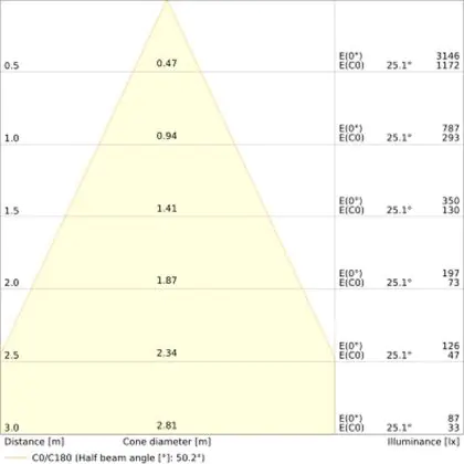 The colour code is a combination of colour rendering (CRI) and light colour (Kelvin). The first number indicates the colour rendering (1 = very poor colour rendering, 9 = maximum colour fastness). The second and third number contains the light colour. Example: the colour code 830 consists of good colour rendering (8) and warm white light (3000K). |