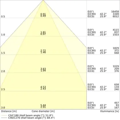 The colour code is a combination of colour rendering (CRI) and light colour (Kelvin). The first number indicates the colour rendering (1 = very poor colour rendering, 9 = maximum colour fastness). The second and third number contains the light colour. Example: the colour code 830 consists of good colour rendering (8) and warm white light (3000K).