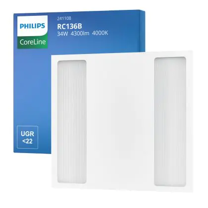 Philips LED Panel Coreline RC136B 25/34W 3100-4300lm - 840 Cool White | 60x60cm - UGR <22 - Selectable Wattage - Emergency 3H